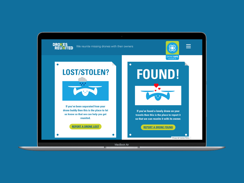 Here is a selection of CAA (Civil Aviation Authority) projects that I've worked on over the years. Featured below are the brand and website creations for a Drone Photography Competition which used the CAA brand triangle to inform a camera frame motif, next is a brand and website creation for a service which reunites lost drones with their owners and lastly a short animation for ATOL protection.