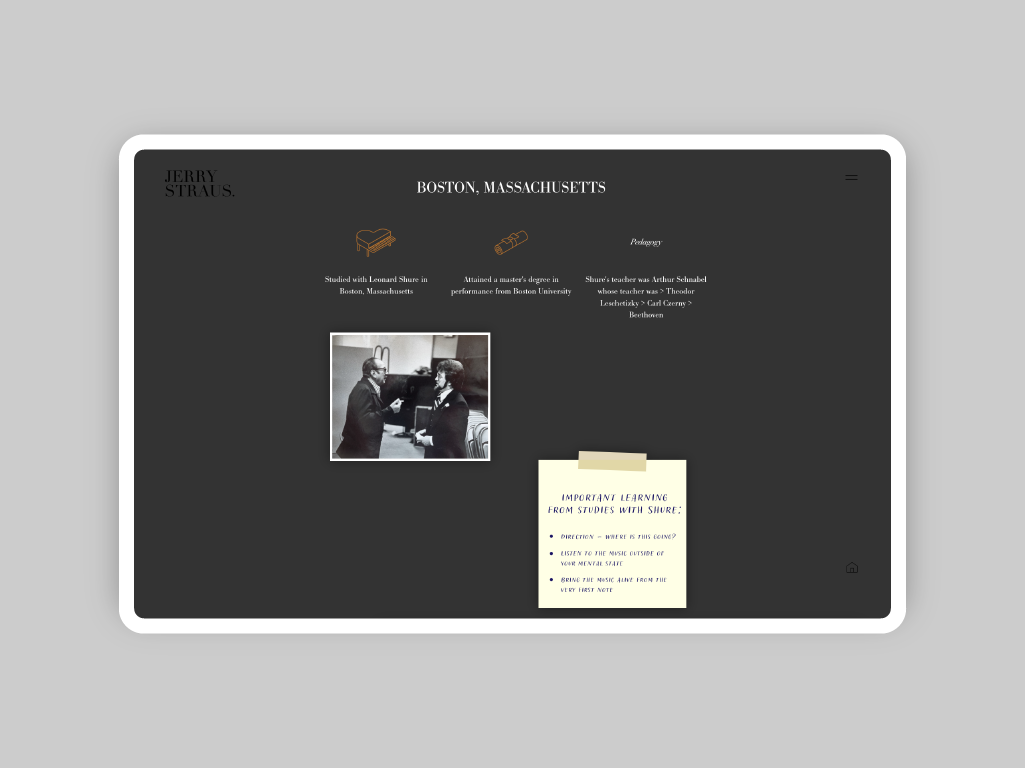 Brand and website creation for entrepreneur and businessman Jerry Straus. The website was to serve as a place the client could direct individuals to learn more about his colourful life.